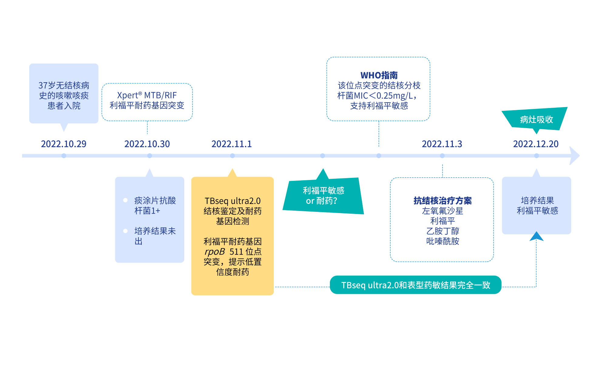 據(jù)WHO數(shù)據(jù)顯示,70%以上的利福平耐藥患者不止存在利福平耐藥,TBseq耐藥檢測(cè)明顯快于培養(yǎng),獨(dú)家耐藥置信度提示更全面的耐藥信息,為耐多藥結(jié)核患者的早期確診提供了一個(gè)快速精準(zhǔn)的診斷方法,幫助患者保留了利福平治療的希望。